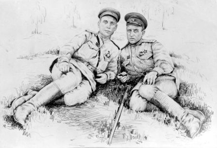 Один из старейших художников Мордовии Александр Андреевич Мухин (1919–1994), ученик И.С.Горюшкина-Сорокопудова, был мобилизован в армию в 1939 году, во время войны участвовал в боях под городами Гродно и Могилев. В 1943 году А.Мухин после ранения вернулся в Мордовию, где вступает в члены Союза художников и сразу же включается в творческую жизнь республики, работая над созданием серии графических портретов «Герои фронта и тыла» (1944). Его рисунки карандашом хранятся в настоящее время в коллекции Мордовского республиканского объединенного краеведческого музея. В портретах своих однополчан художник запечатлел людей различных воинских званий: капитанов, лейтенантов, рядовых. Образы фронтовиков предстают, словно ожившая история времени, опаленного войной. Так, на листе «Между боями» (1944) два полевых командира изображены в момент кратковременной передышки между наступлениями.